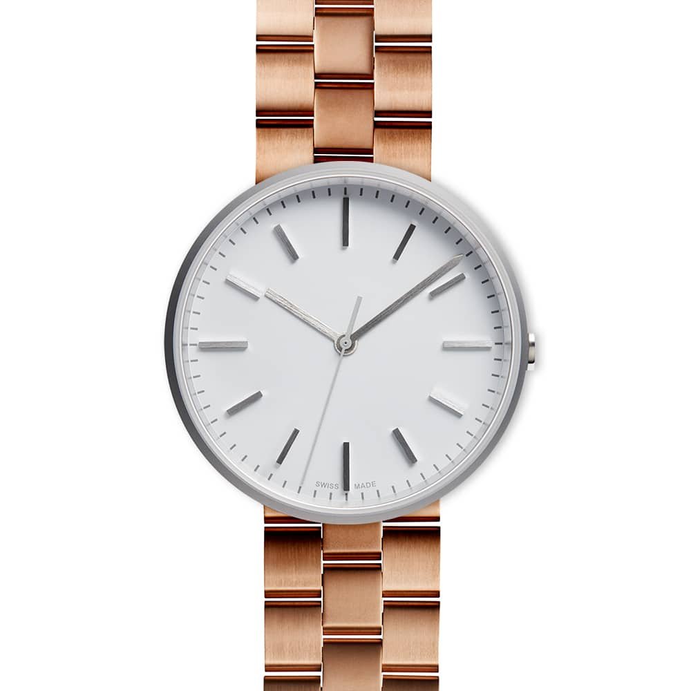 PVD rose gold linked watch bracelet with butterfly clasp